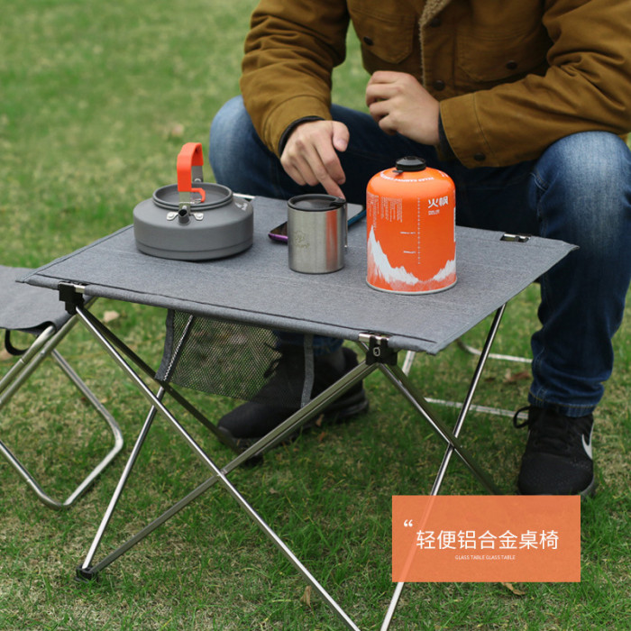 戶外折曡小桌子可攜式露營野餐桌休閒燒烤野營桌鋁合金布面桌子