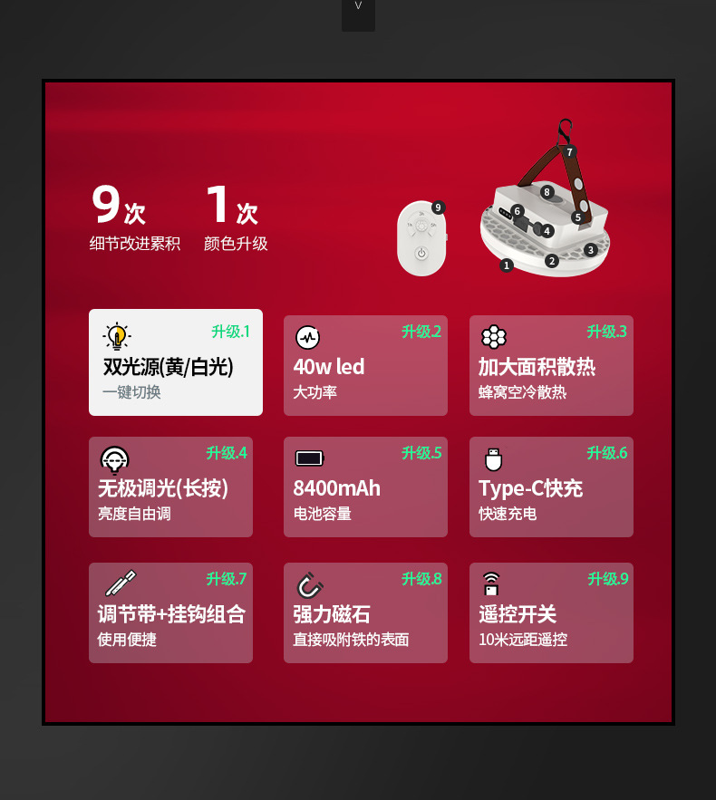 雅尼Y3可遙控露營燈LED戶外照明充電掛燈超亮超長續航停電應急燈