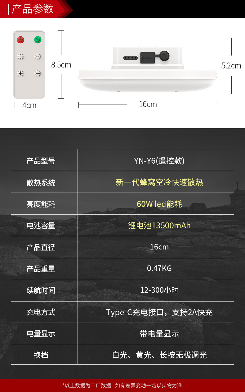雅尼Y6可遙控LED露營燈戶外照明充電掛燈超亮超長續航停電應急燈
