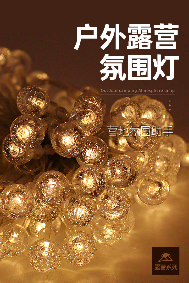 雅尼led戶外露營氛圍燈串氣泡燈帳篷營地野營臥室聖誕生日布置