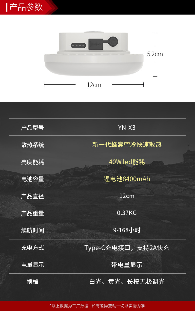雅尼X3露營燈LED戶外照明充電掛燈超亮超長續航停電應急備用燈
