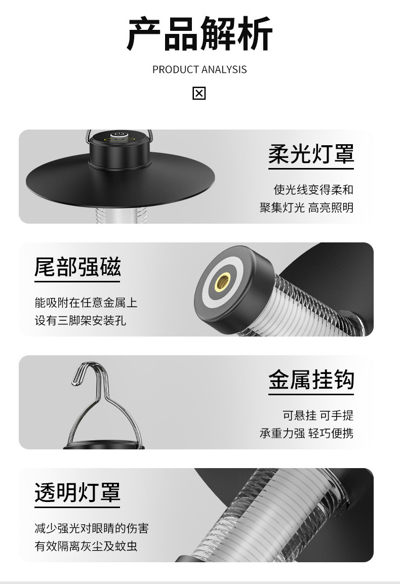 新款小巧可攜式LED戶外照明燈,多功能野營燈底部磁吸可懸掛氛圍燈