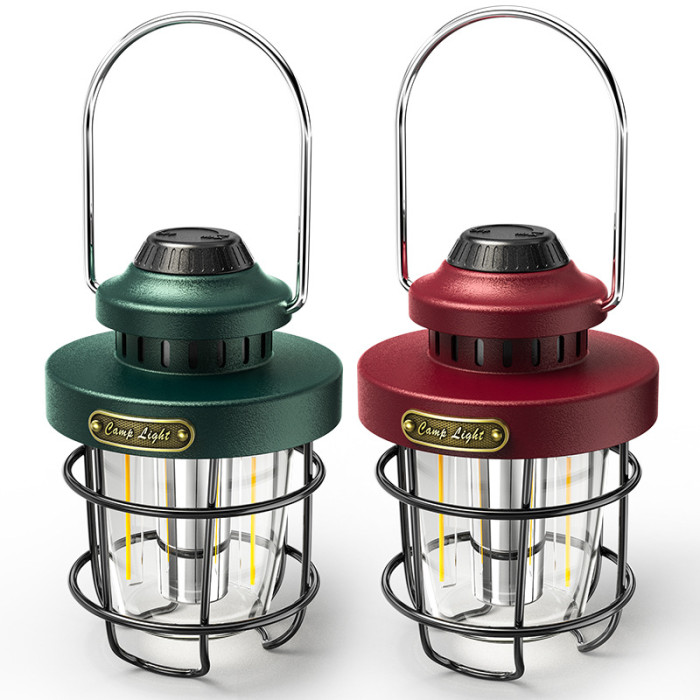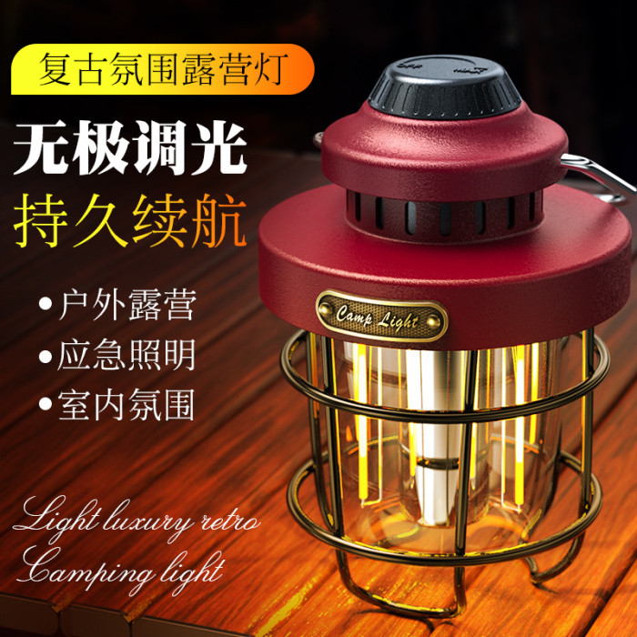 新款戶外野營燈高檔鐵藝氛圍燈TYPE-C充電家用應急復古露營燈