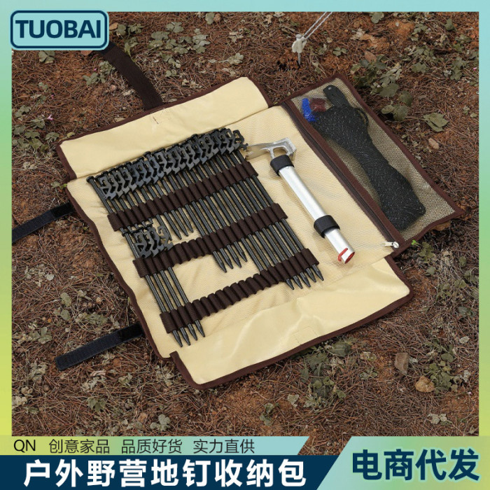 戶外野營地釘收納包帳篷天幕營釘鎚子帳篷釘收納包營釘地釘包手提