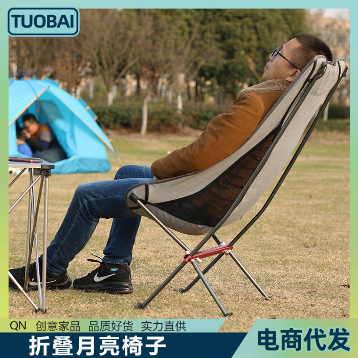 可攜式戶外超輕椅釣魚寫生折曡月亮椅子加高野營靠背椅露營野餐椅子