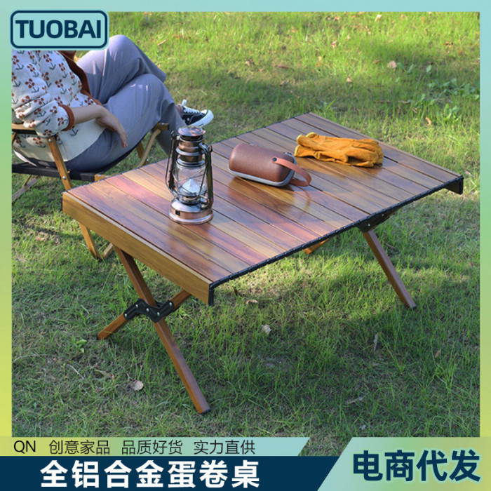 野外桌子野炊桌全鋁合金蛋卷桌超輕可攜式野餐露營折曡桌燒烤桌椅