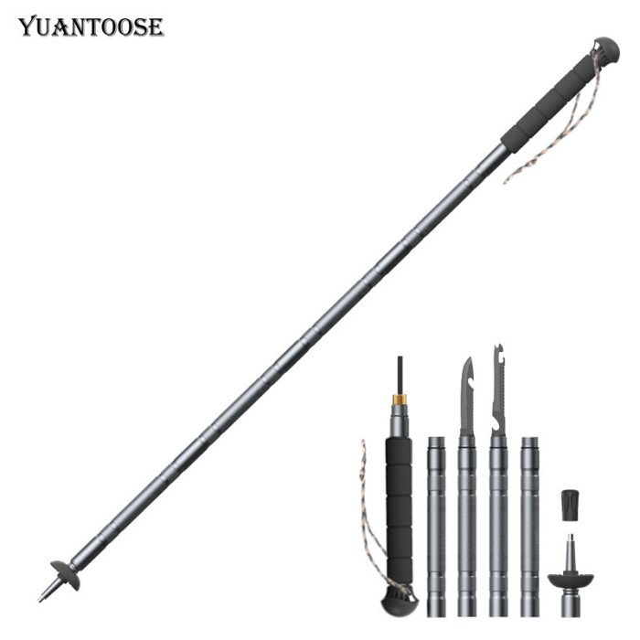 登山杖多功能折曡露營工具手杖鋁合金野營徒步戰術防身棍手杖柺杖