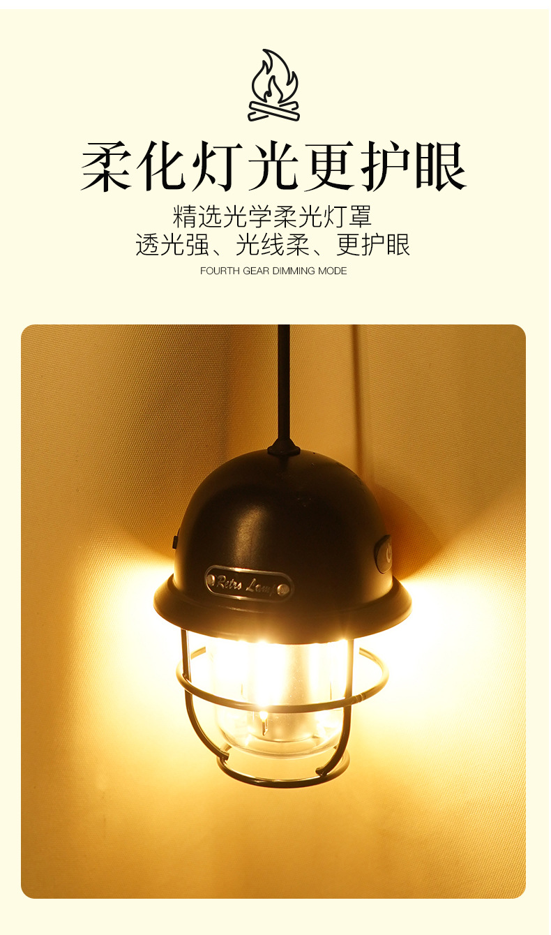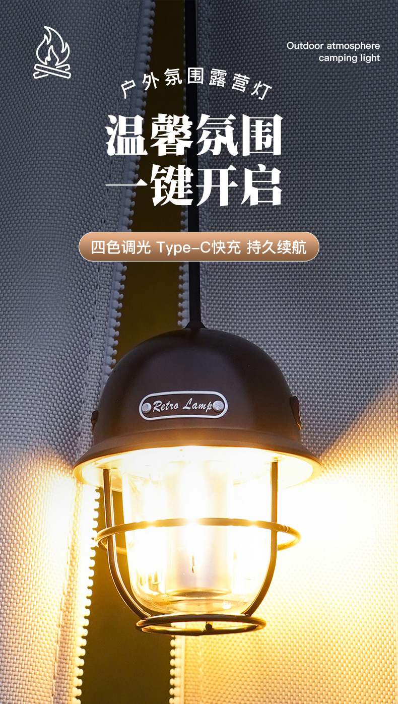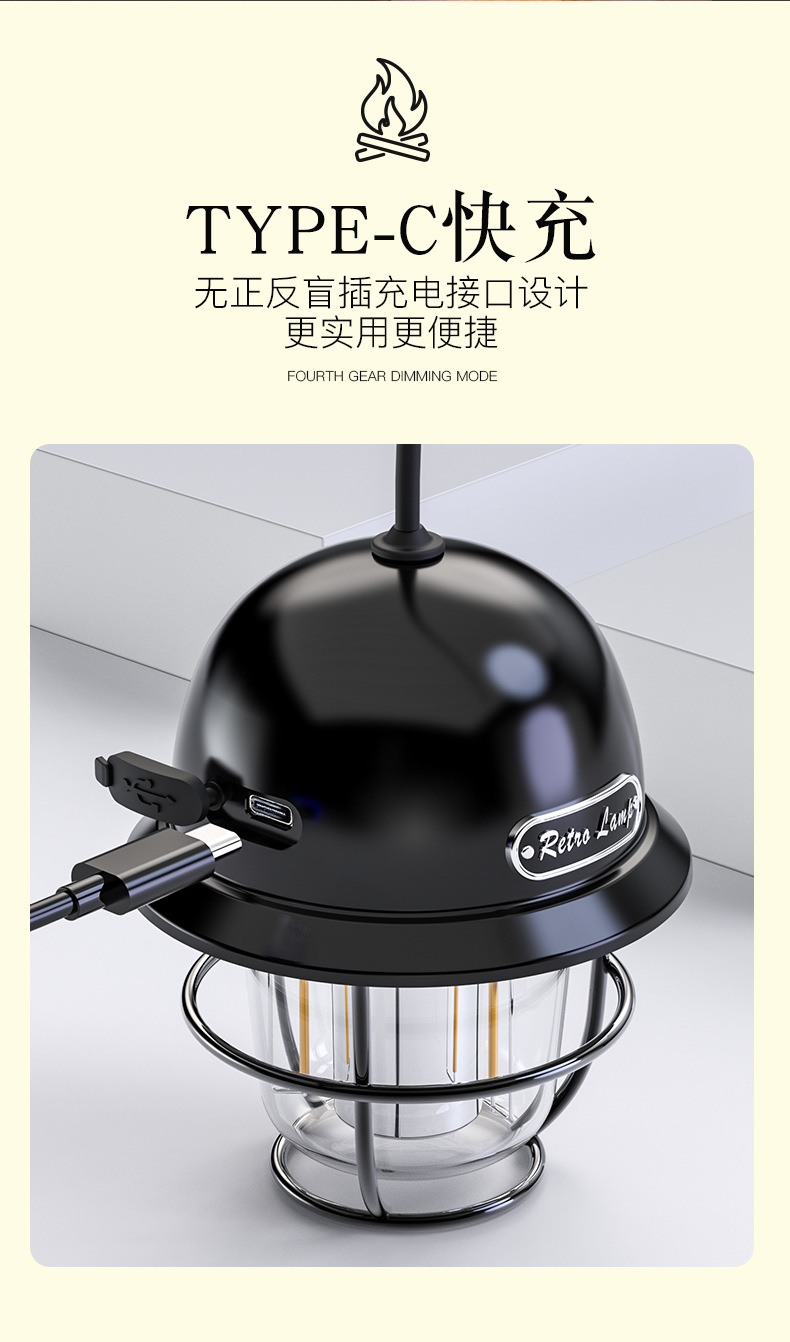 新款復古露營燈戶外type-c充電手提吊燈無極調光多色溫暖光氛圍燈