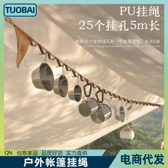 戶外晾衣繩旅遊皮質皮革PU天幕露營野營掛繩帳篷天幕配件掛物繩子