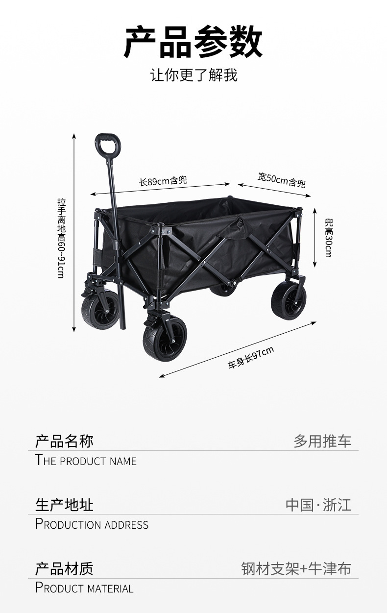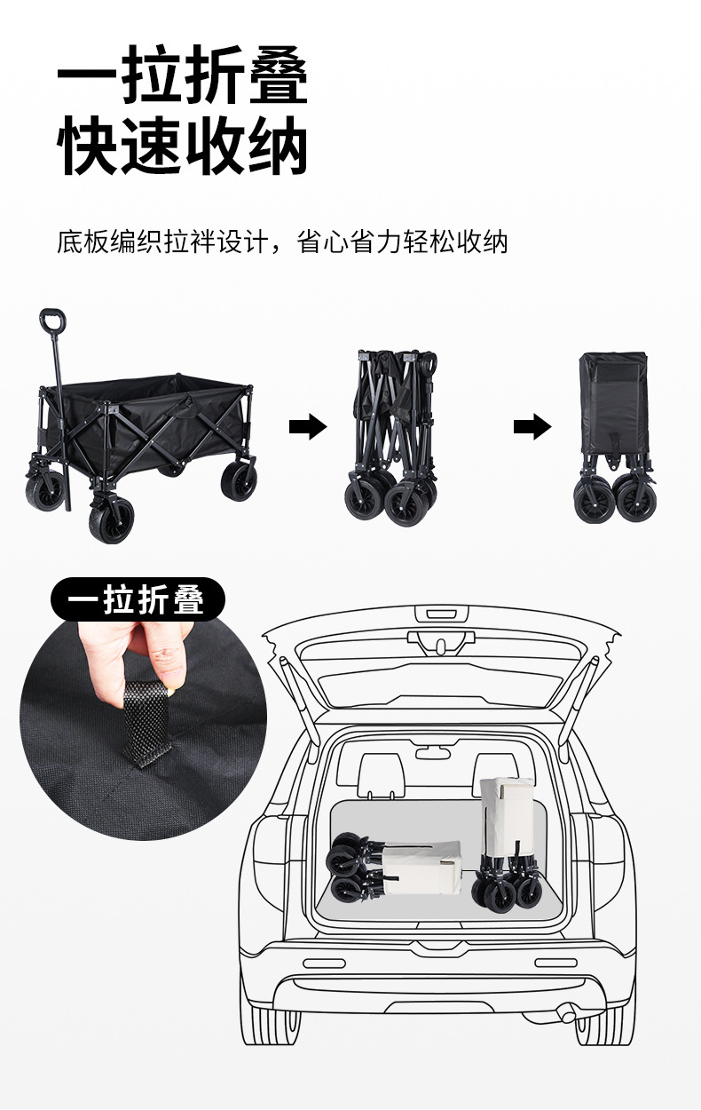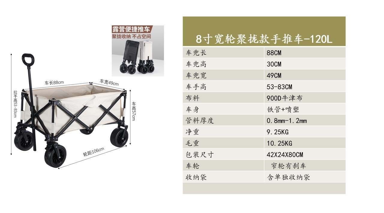 JR戶外折曡手拉車露營可攜式加厚加寬金屬營地車聚攏款拖車小推車