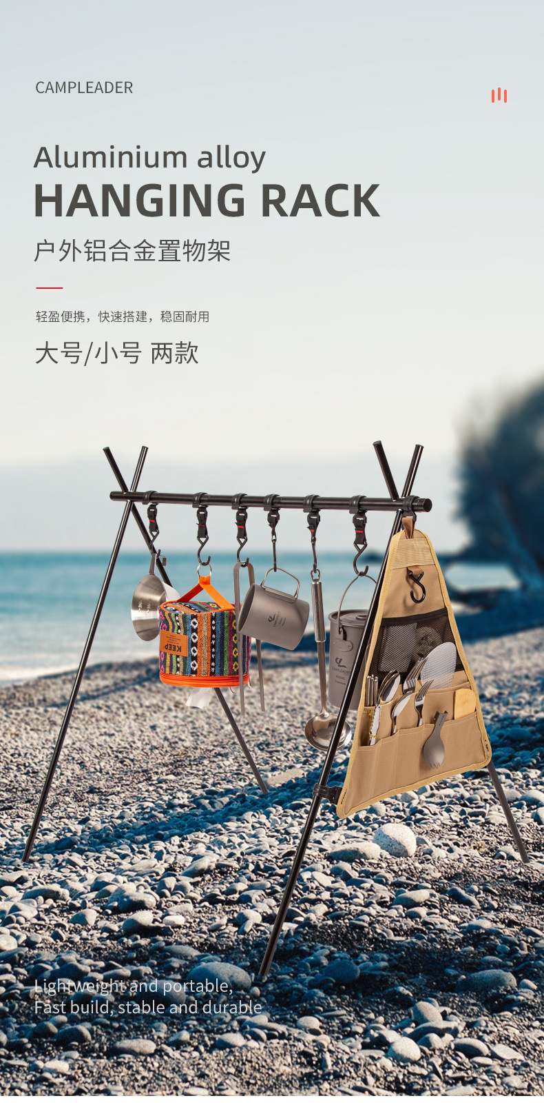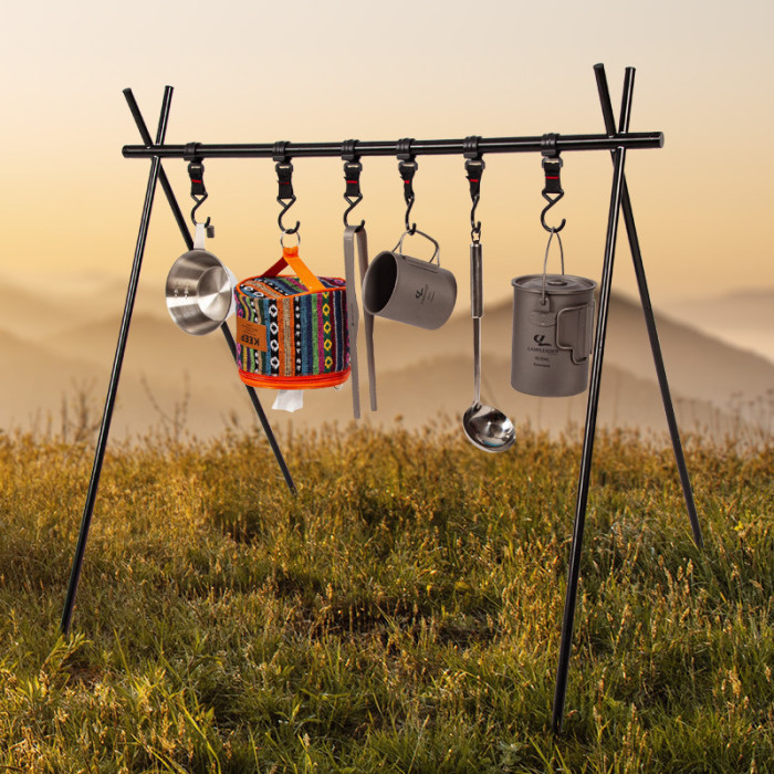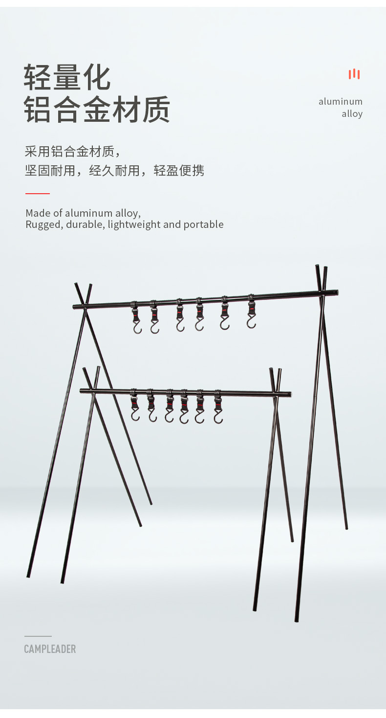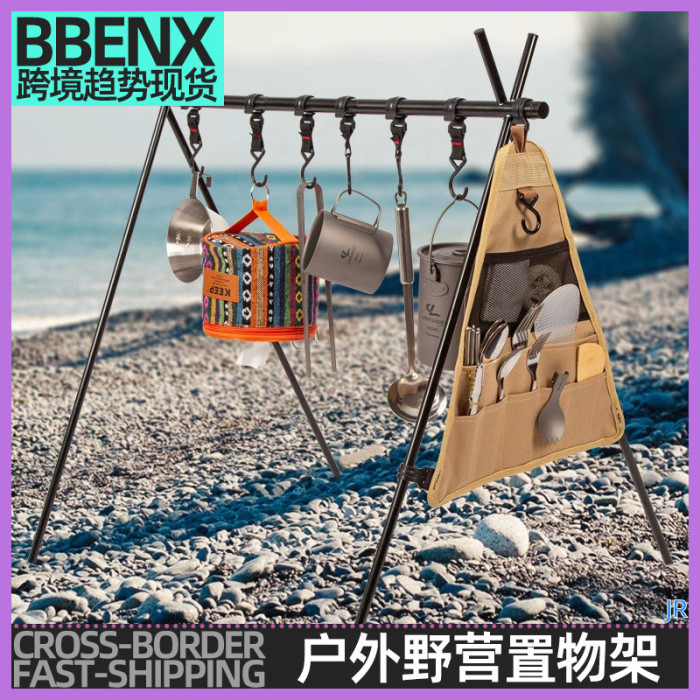 JR戶外野營置物架露營可攜式三角架晾衣架炊具收納架鋁合金可折曡