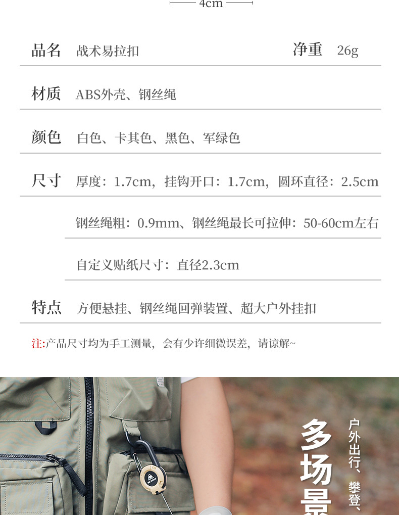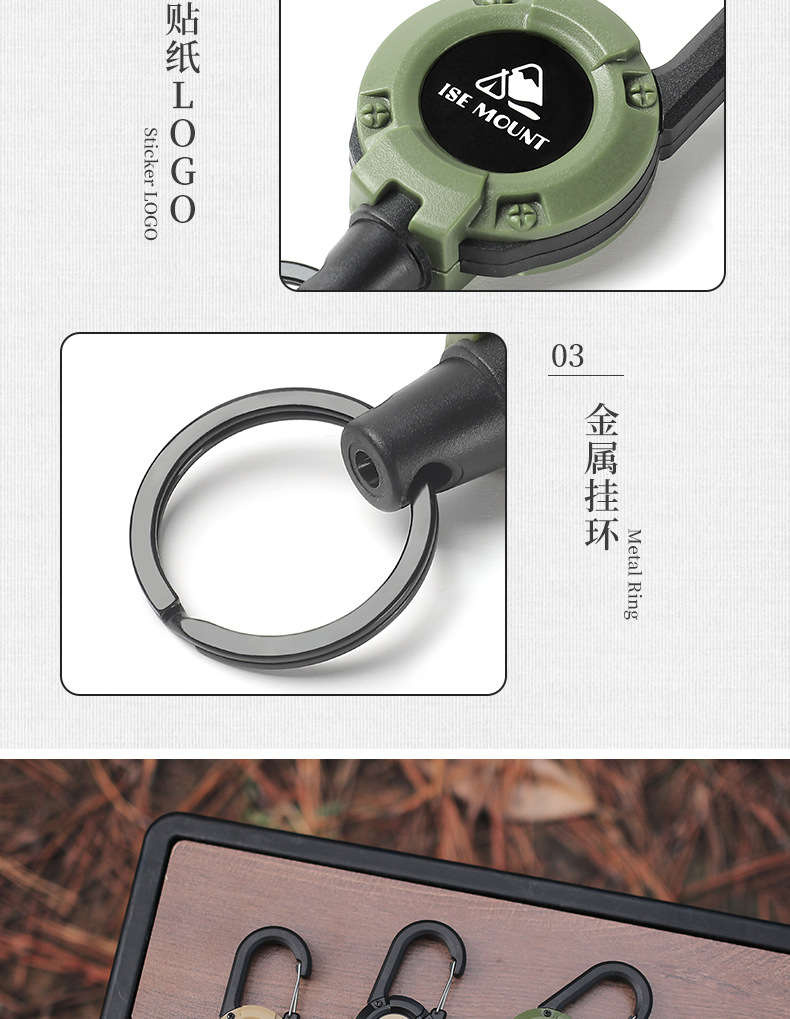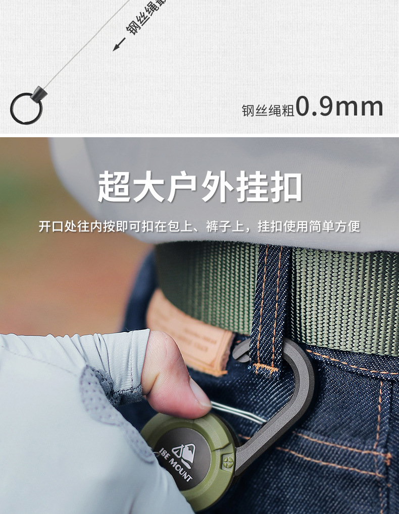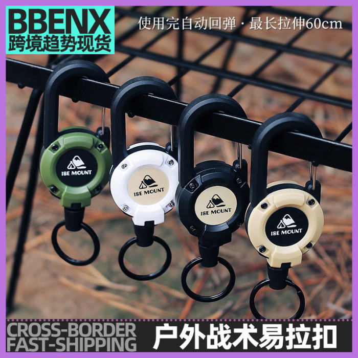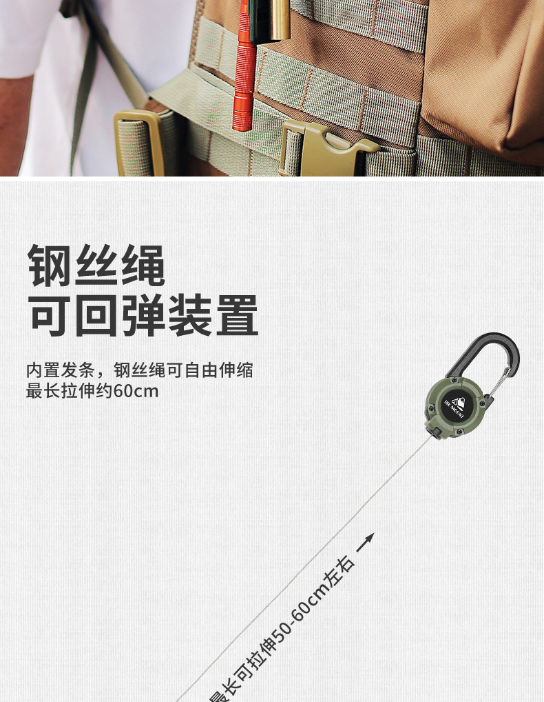 戶外伸縮釦鋼絲繩多功能鑰匙扣露營高迴彈戶外可攜式鋼絲四色彈簧釦