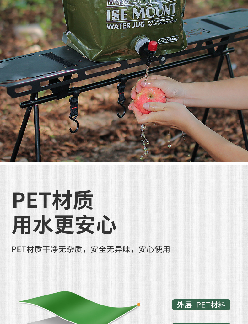 戶外 7.5L折曡儲水袋大容量塑膠水桶帶閥門塑膠水桶野營 裝水袋囊