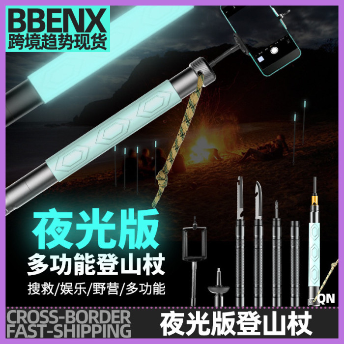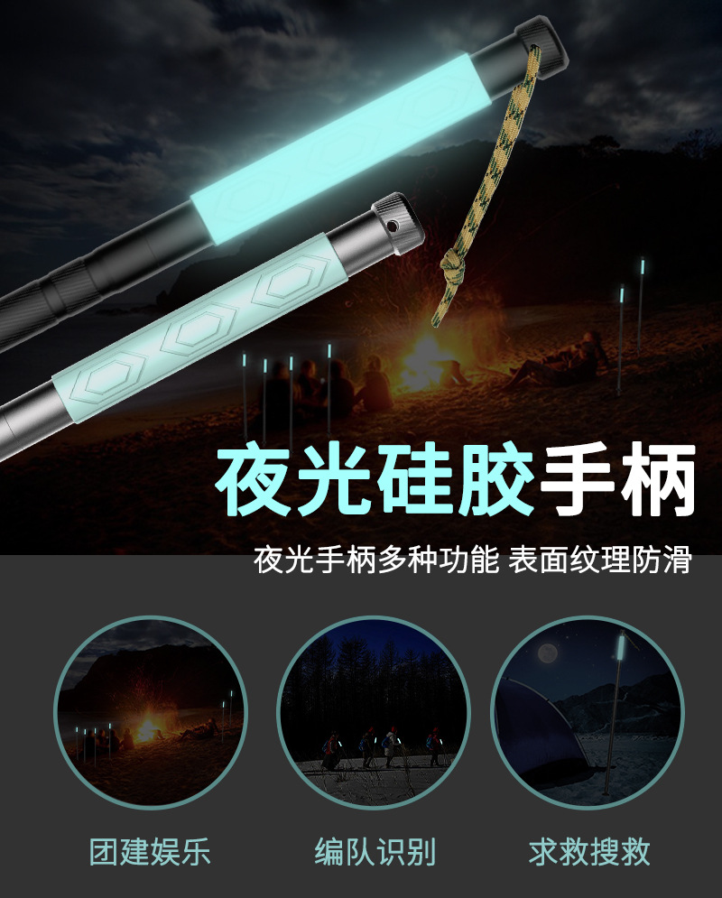 - 矽膠夜光款鋁合金戶外徒步遠足手杖可伸縮款多功能登山杖搜救野營