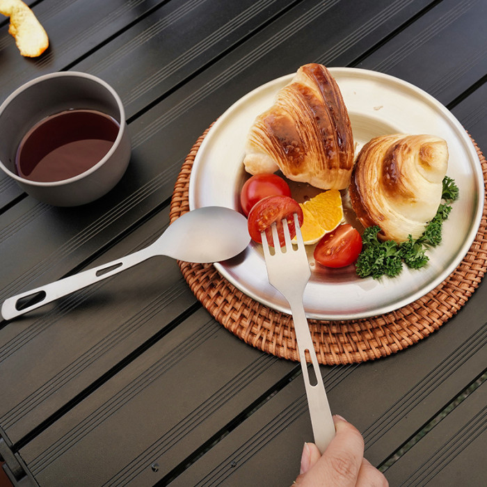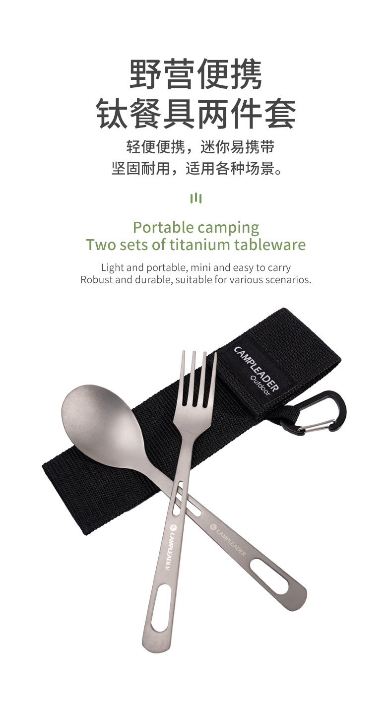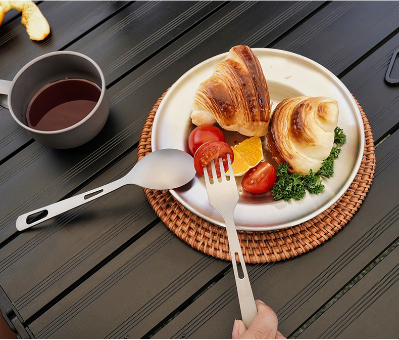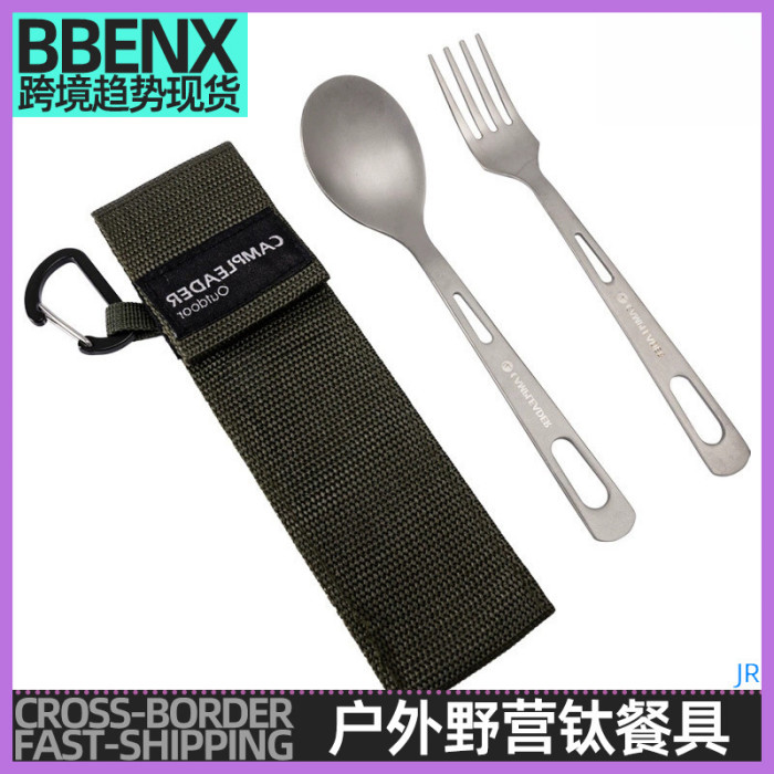 JR戶外野營鈦餐具叉勺露營登山旅行野餐純鈦叉子勺子套裝輕便易攜