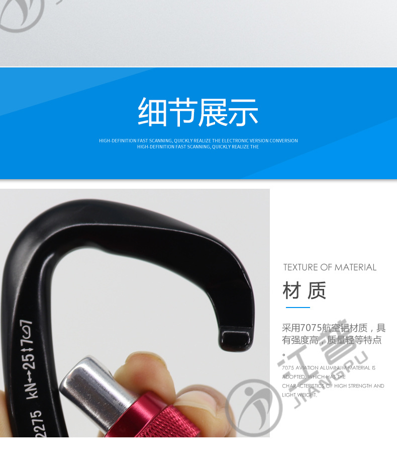 小D型主鎖戶外攀岩主鎖登山扣快掛扣 主鎖鎖扣攀岩安全釦掛鉤鎖具