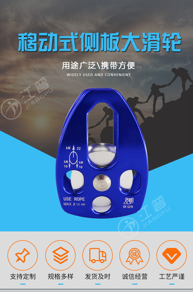 戶外攀岩登山救援滑輪移動側板式高空大滑輪速降拓展運輸探洞裝備
