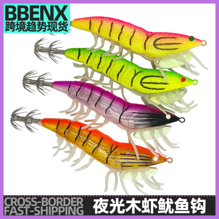 夜光木蝦魷魚鉤帶響珠軟腳蝦路亞餌海釣仿真硬餌假餌漁具釣魚魚餌