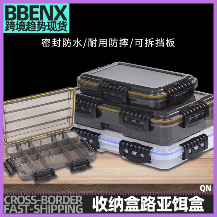 路亞收納盒防水可拆卸擋板大容量組合卡扣收納盒配件盒黑色儲物盒