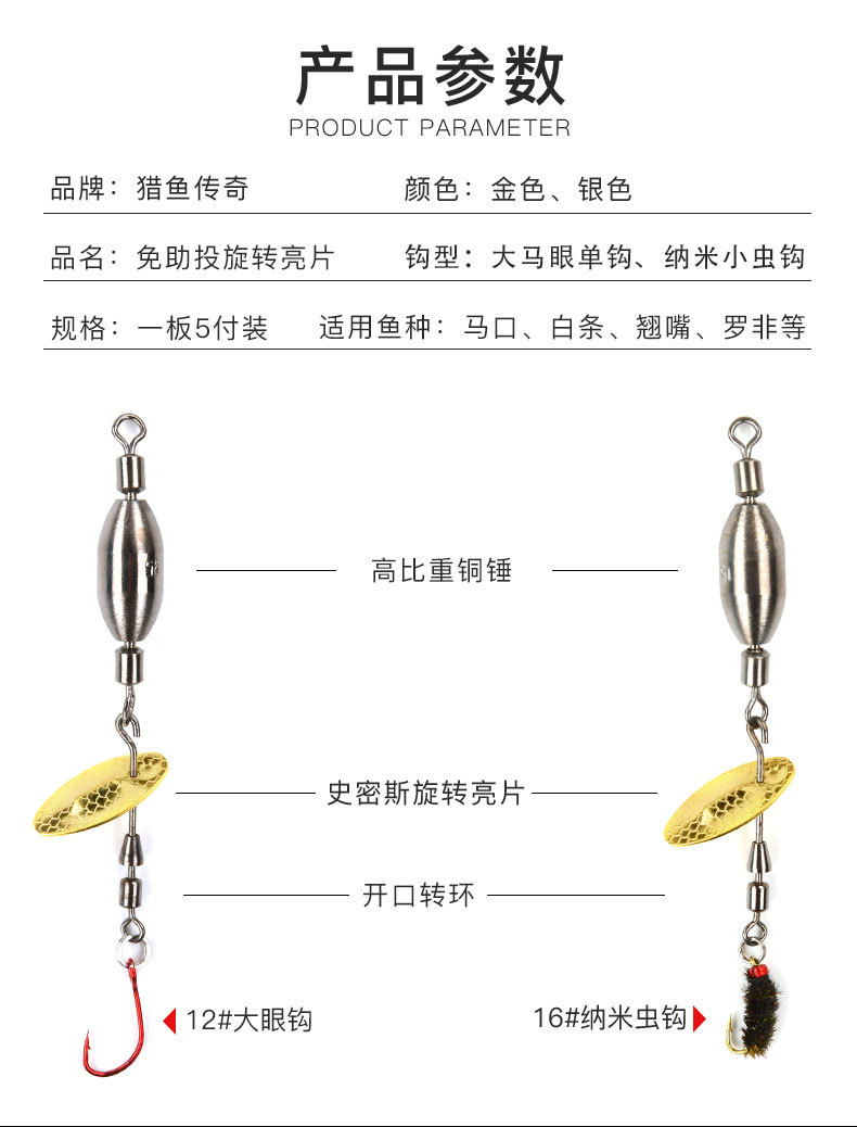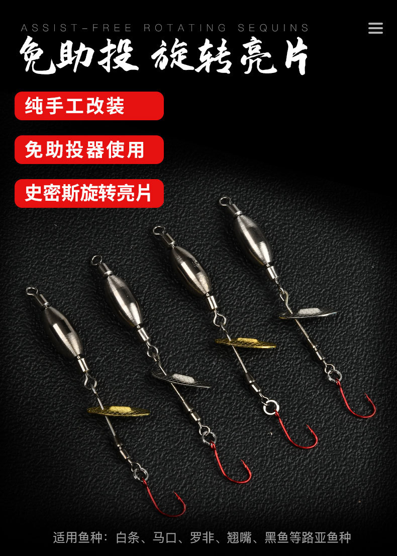 改裝野釣旋轉飛旋瓜子亮片免助投器遠投翹嘴白口微物假餌垂釣魚餌