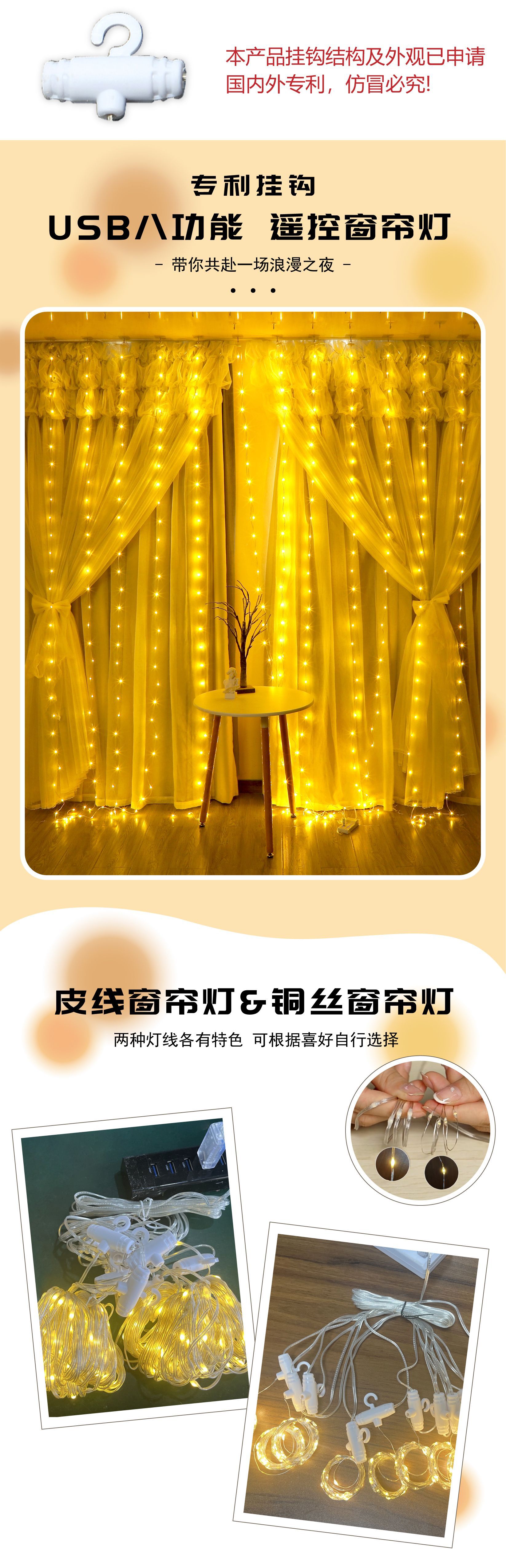 燈光顔色 | 正白 窗簾燈【USB八功能】帶遙控 |