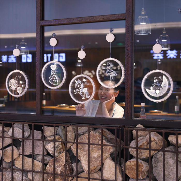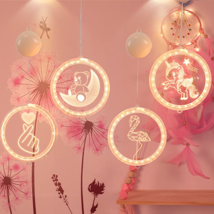 霓虹獨角獸吸盤LED彩燈掛件生日氛圍裝飾室內櫥窗布置燈牌掛飾