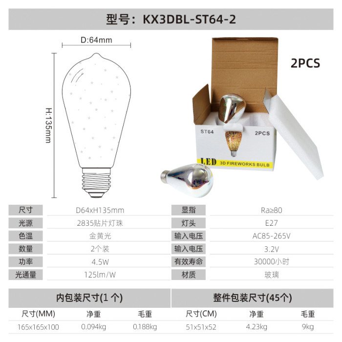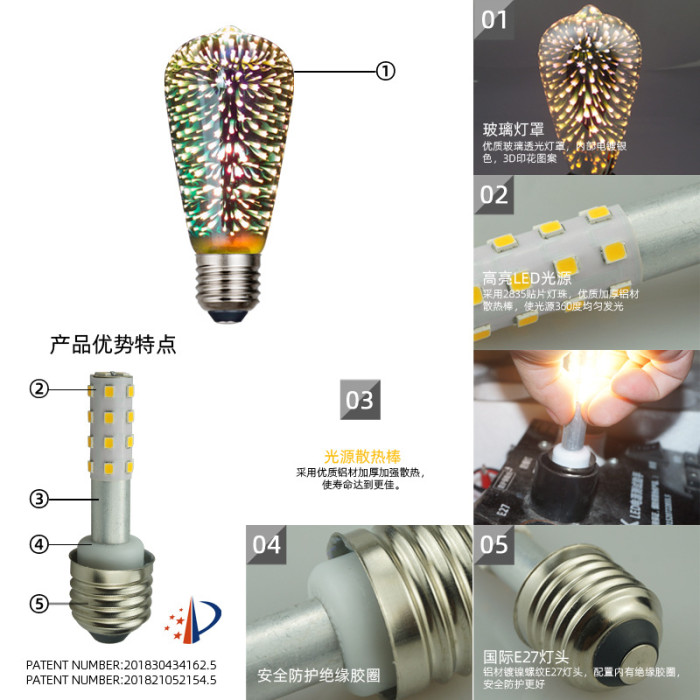 LED3D菸花燈泡E27燈泡ST64菸花燈泡節日喜慶聖誕氛圍裝飾玻璃球泡