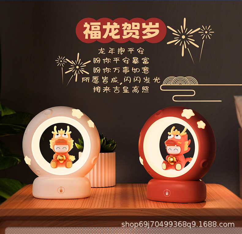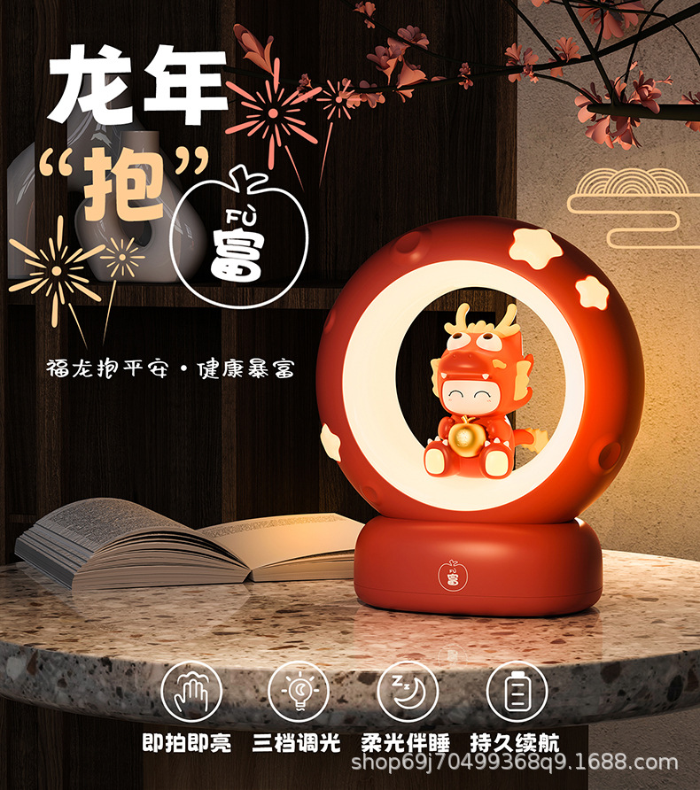 新品裝飾擺件氛圍燈創意婚慶禮品小夜燈臥室床頭燈摘星攬月抱富龍