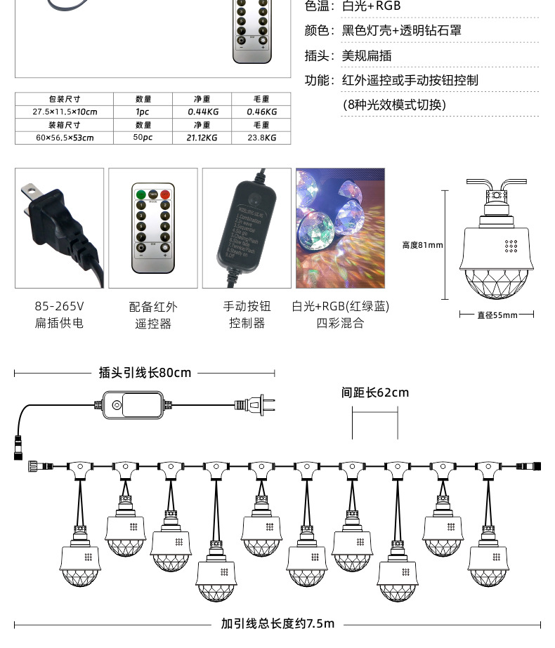LED垂吊式氛圍燈串遙控七彩裝飾燈節日婚慶酒吧娛樂場所氛圍串燈