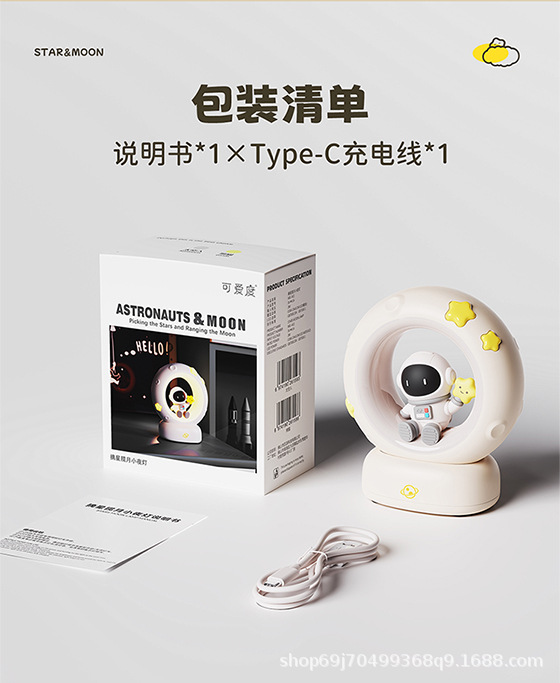 太空人小夜燈 精美禮品柔光喂奶小夜燈網紅小夜燈拍拍小夜燈