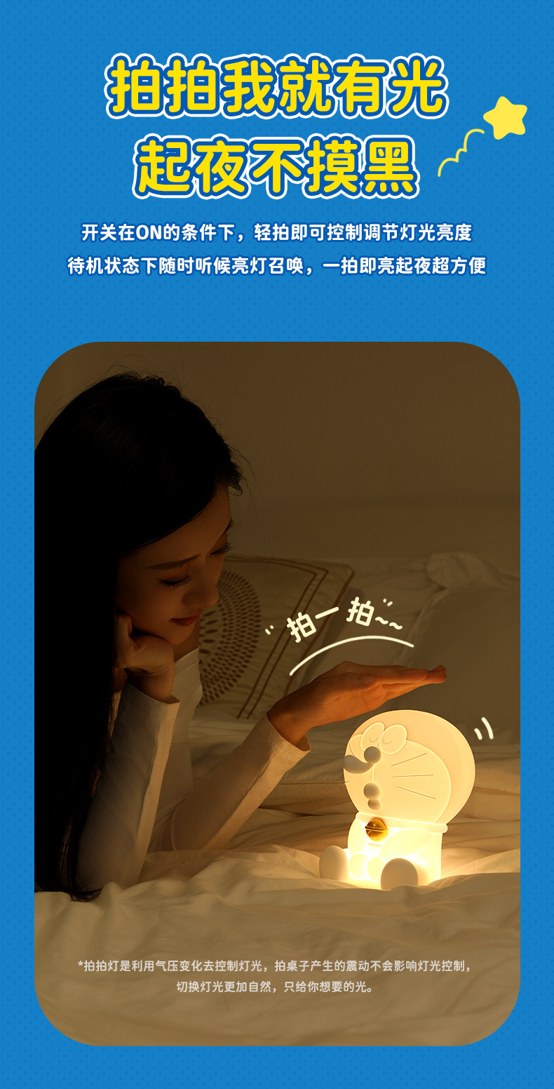哆啦A夢 睡眠款氛圍燈矽膠睡眠拍拍燈書桌床頭卡通小夜燈拍拍燈