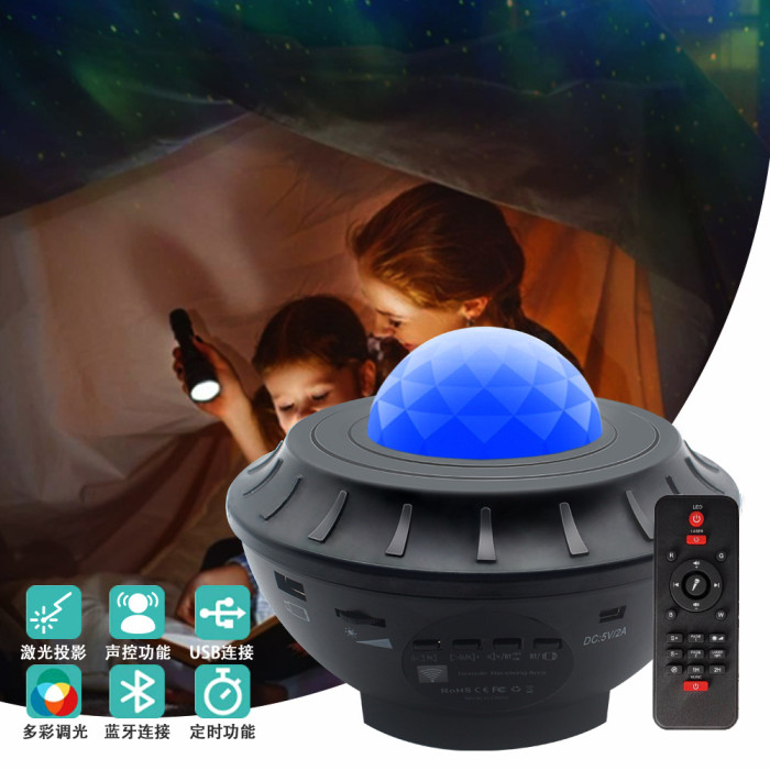 聚寶盆滿天星星空雷射水波紋投影燈藍牙舞台燈臥室氛圍小夜燈