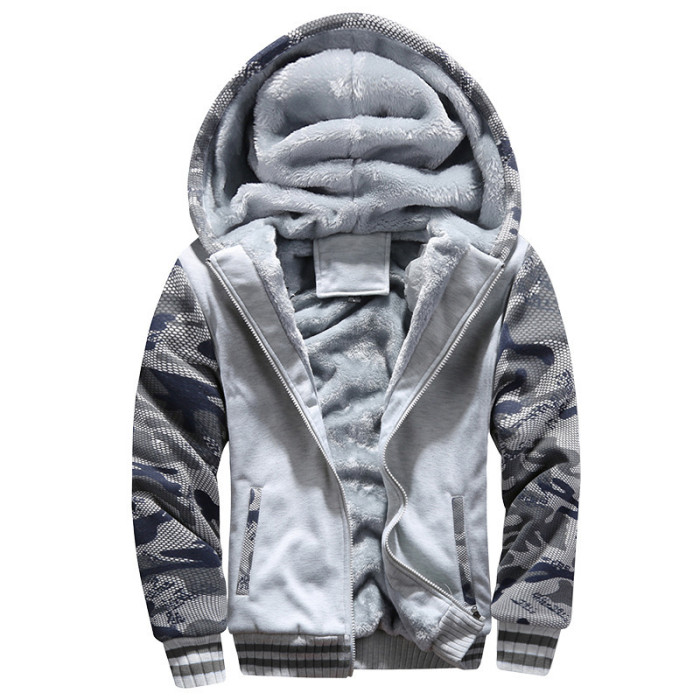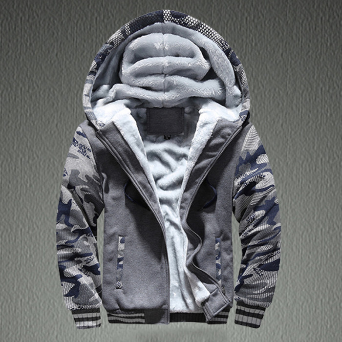 爆款冬季迷彩衛衣男休閒運動開衫衛衣外套加絨加厚保暖衛衣