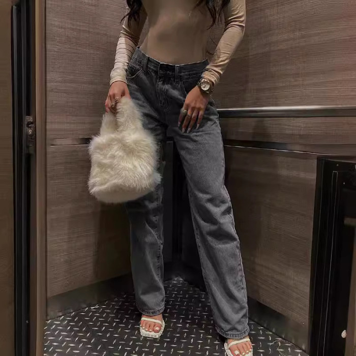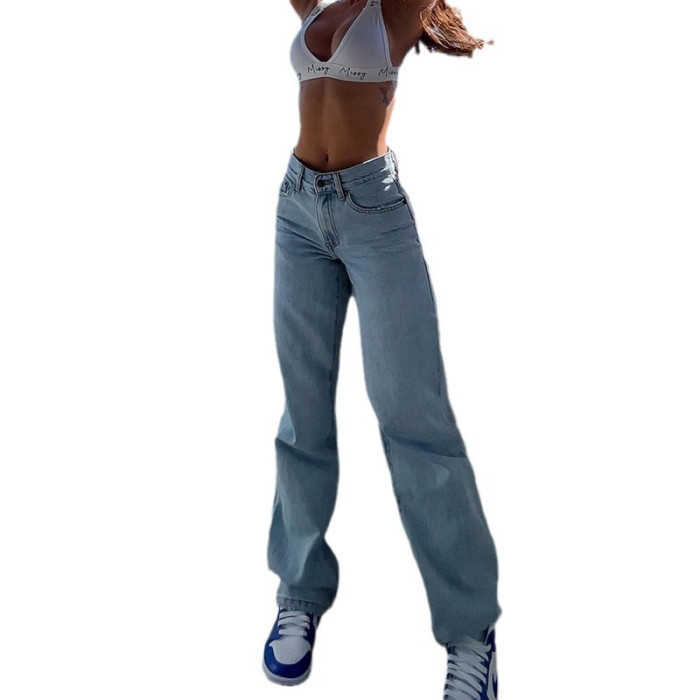 歐美高腰破洞修身牛仔長褲女 女式牛仔褲