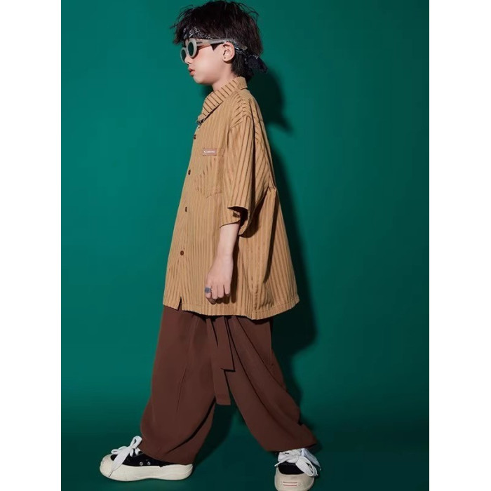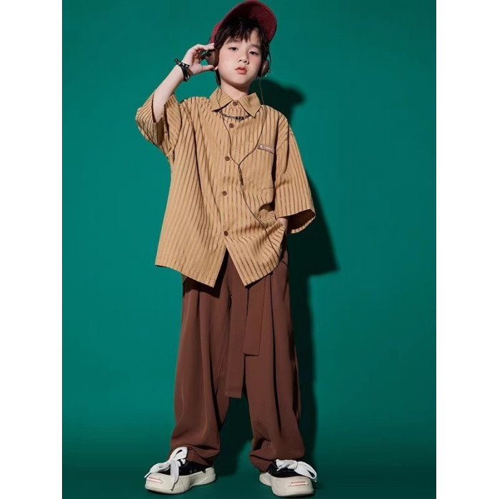 夏季中大童潮流酷帥男童時髦百搭襯衫長褲港風穿搭男孩洋氣兩件套