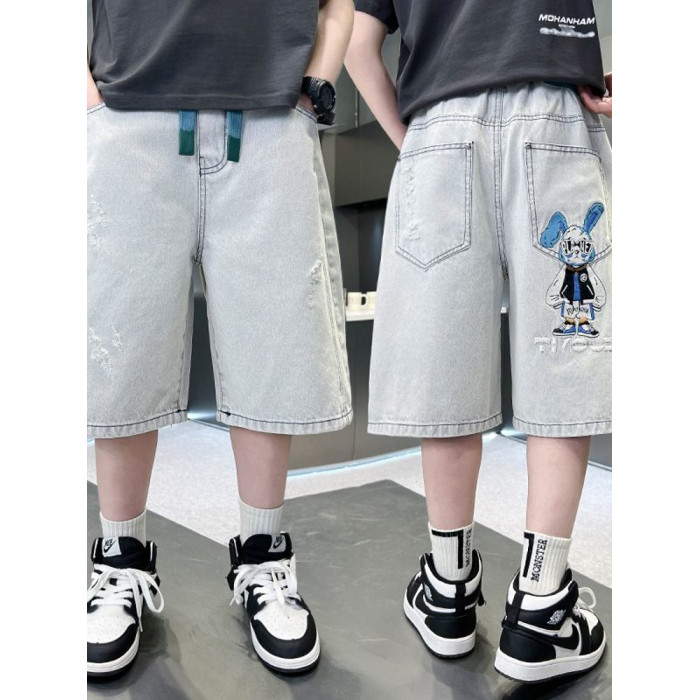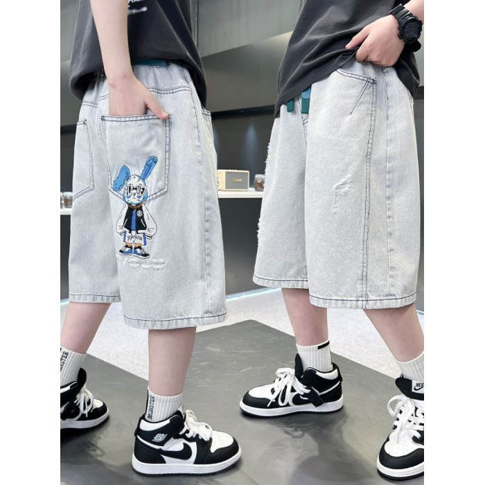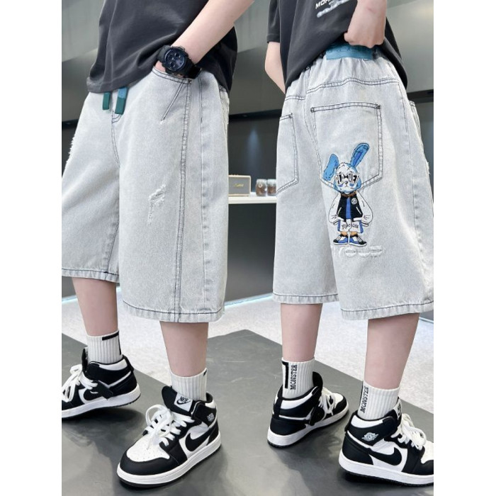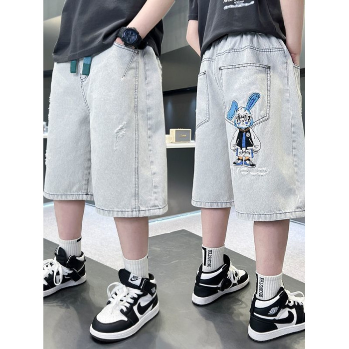 安哼安哼男童牛仔七分褲夏季薄款兒童短褲2025新款中大童破洞中褲