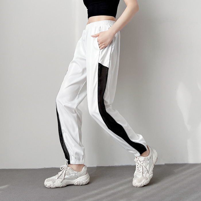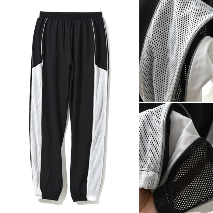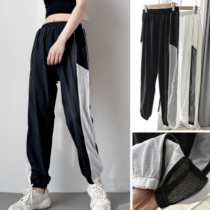 無補 女士運動褲 薄款拼接網眼束腳健身長褲子 反光條 春夏款