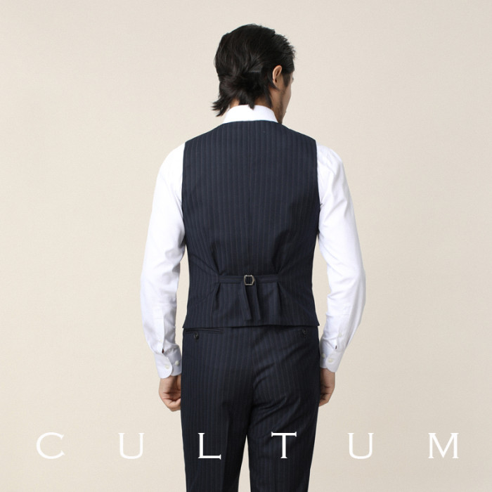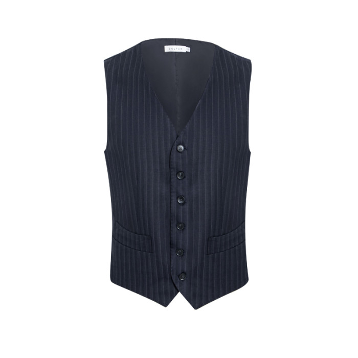 CULTUM Napoli系列 V領條紋西裝馬甲男商務紳士正裝修身西服馬夾