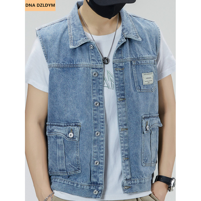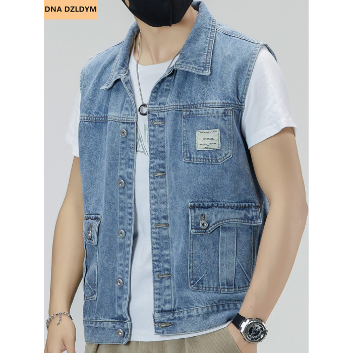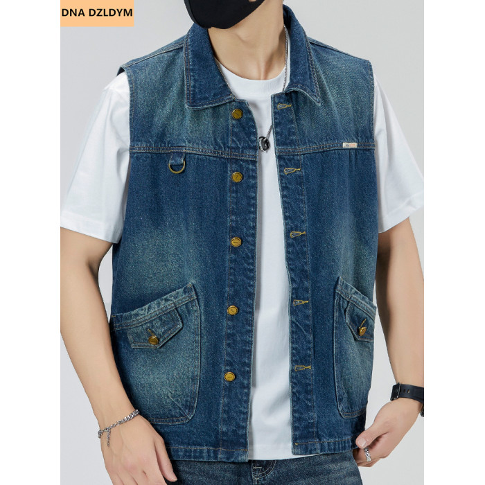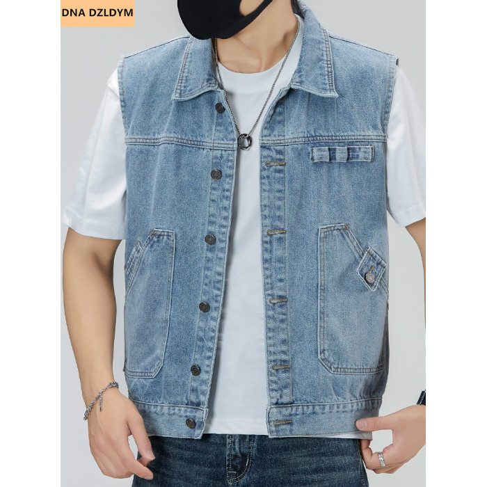 春秋2025新款牛仔馬甲男寬松大碼復古無袖坎肩馬夾工裝潮牌外套男