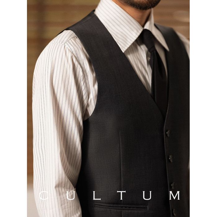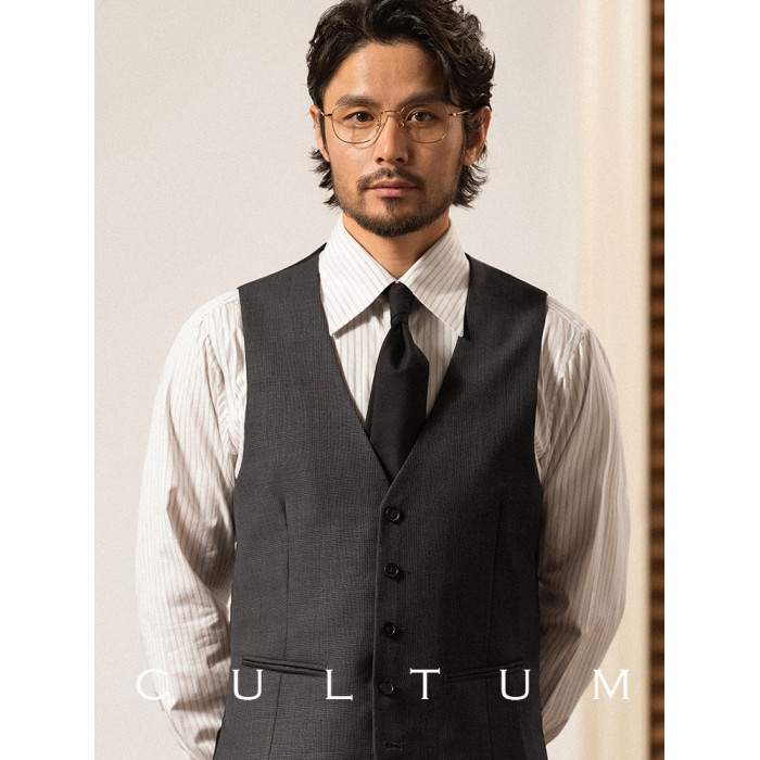CULTUM 50%羊毛親王格修身無領西裝馬甲男士商務職業正裝西服馬夾