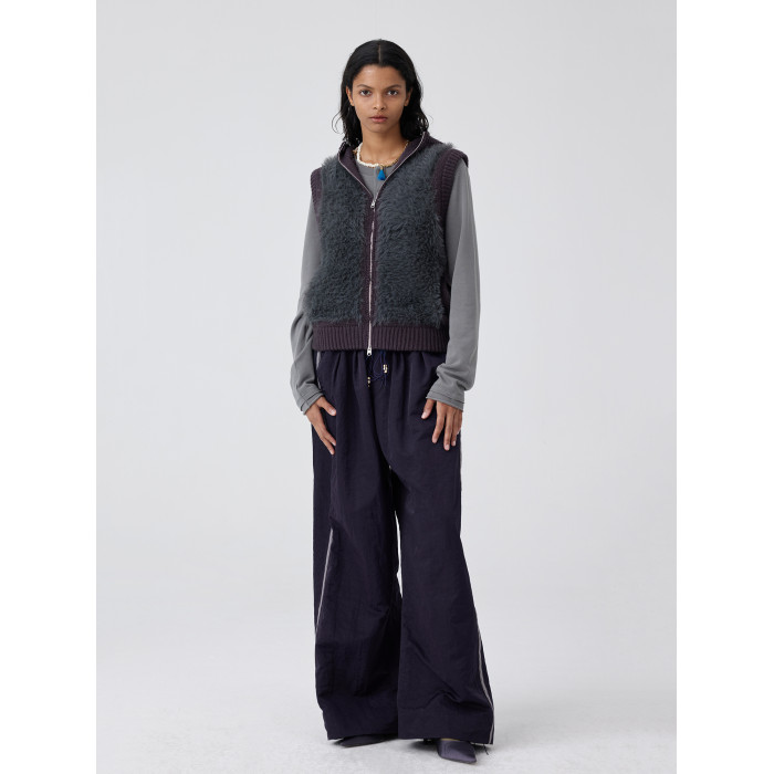 Simple Project*Zipper Knitted Vest長毛拼接拉鍊連帽毛衣馬甲