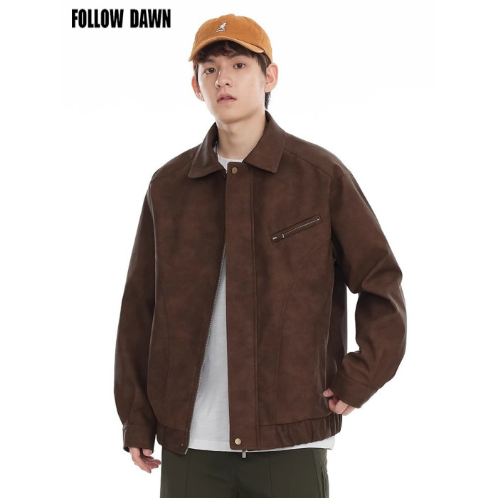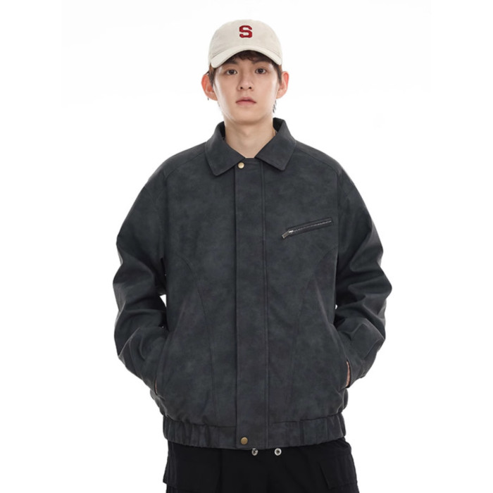 美拉德工裝皮衣外套男2025春季潮牌PU皮寬松休閒翻領皮夾克