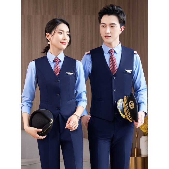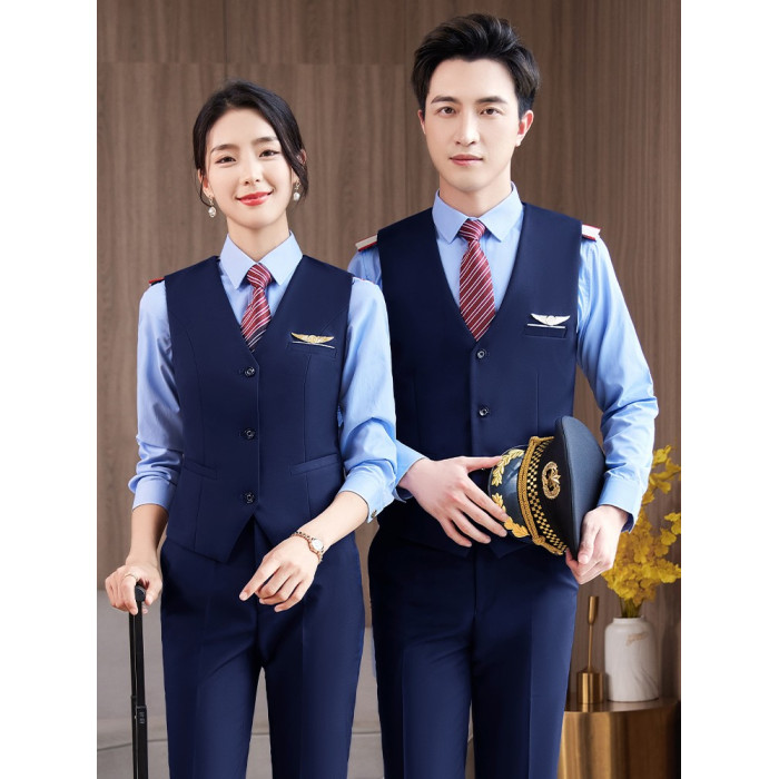 鐵路工作服女夏季藍色襯衫工裝馬甲鐵道演出服高鐵列車乘務員製服