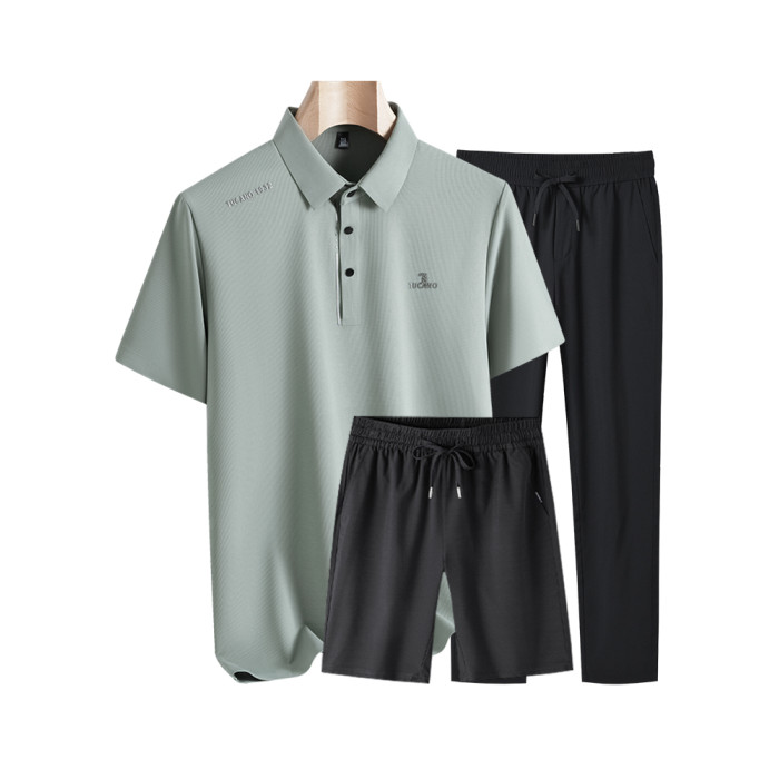 啄木鳥夏季2025新款休閒爸爸冰絲運動套裝中年男士polo衫衣服男C