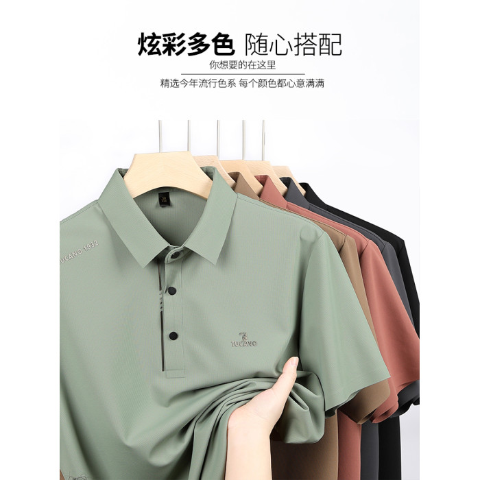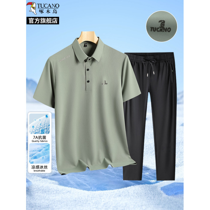 啄木鳥中年爸爸2025新款父親冰絲休閒運動套裝男士短袖T恤POLO衫
