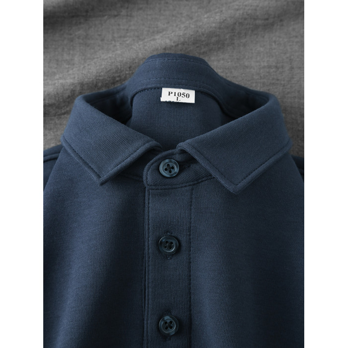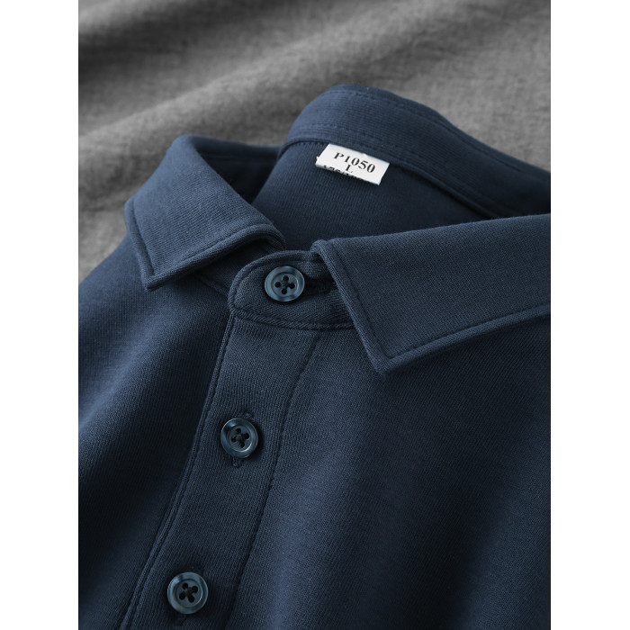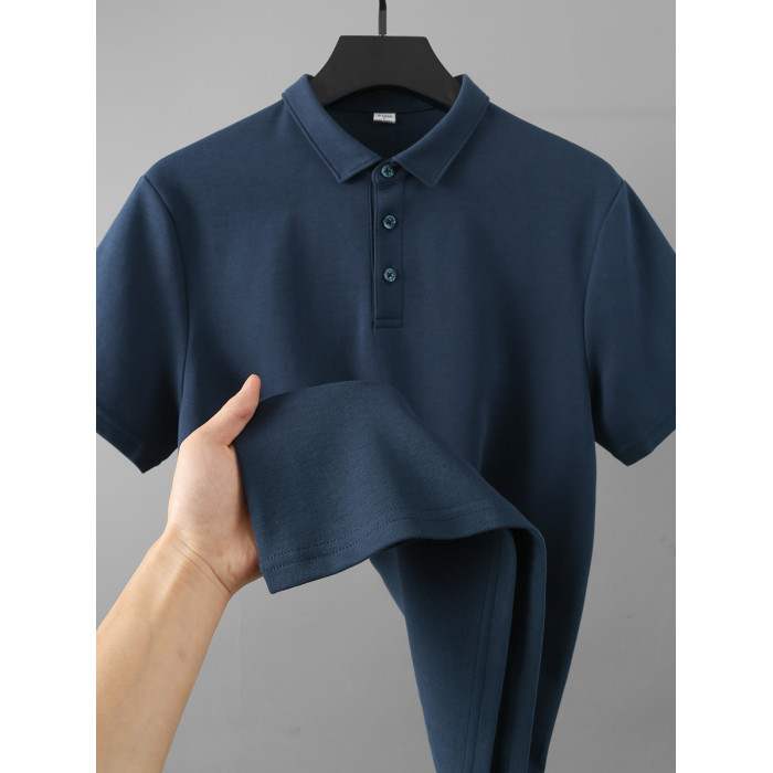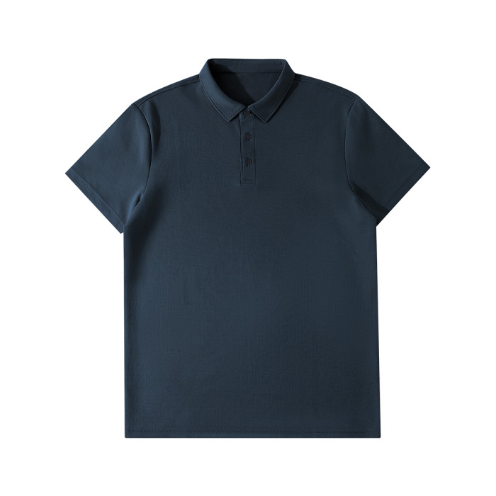 日系復古穿搭!顯白藏藍色重磅翻領短袖Polo衫夏季休閒寬松打底衫