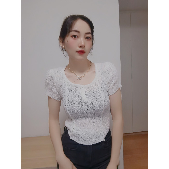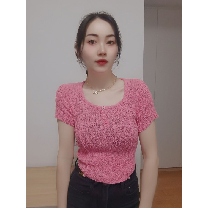 春夏韓版圓領不規則設計感針織短袖女修身顯瘦打底衫短款上衣INS
