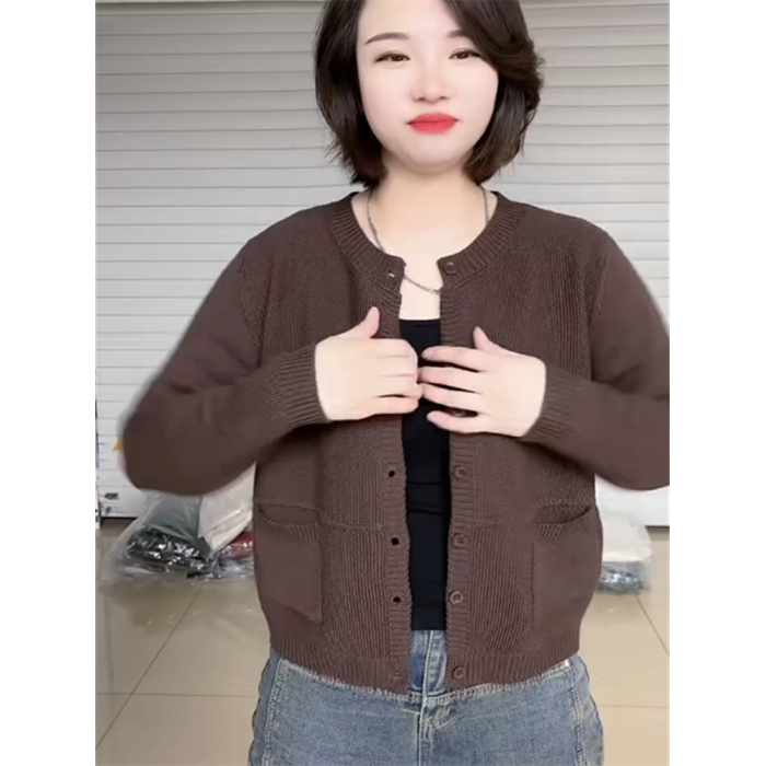 新款潮流圓領針織開衫純色百搭小個子打底衫大碼休閒風日常外套女