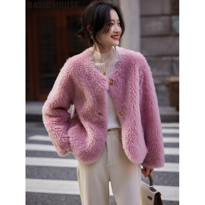 Basic House/百家好山茶白半高領大衣內搭蕾絲針織打底衫女春秋季