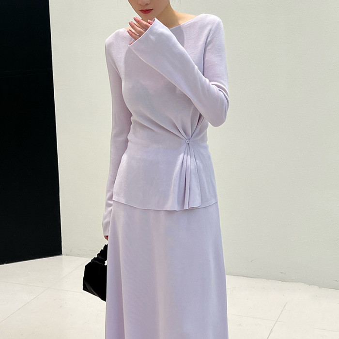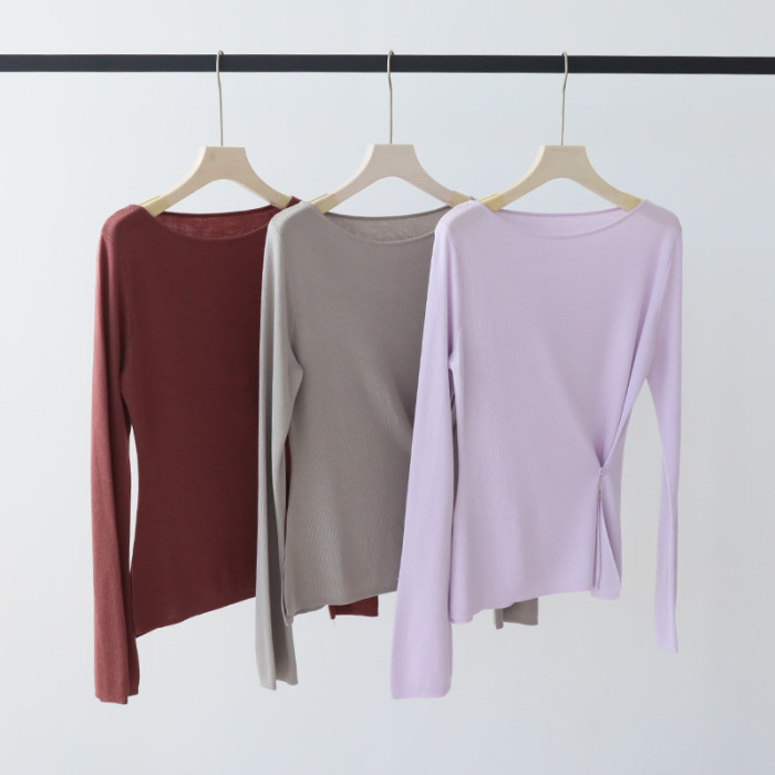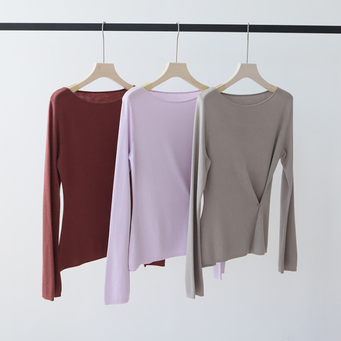 天絲混紡桑蠶絲高級感氣質針織衫長袖打底衫女十三行早春新款穿搭